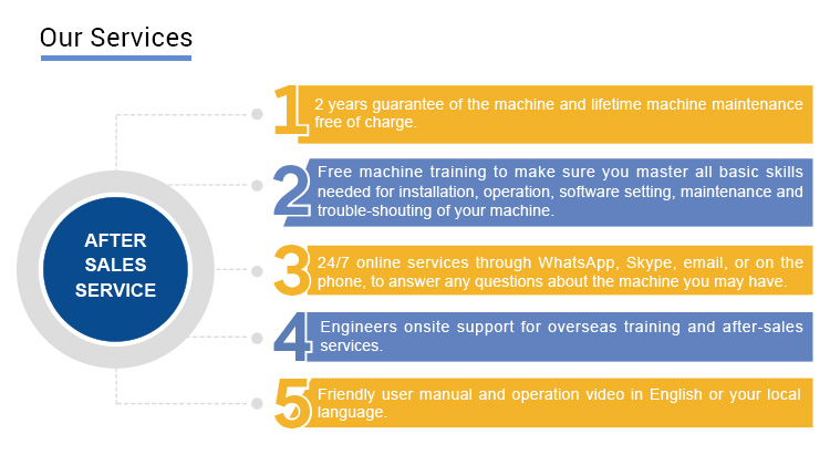 ตอบ: เราจะจัดหาชิ้นส่วนฟรีในช่วงระยะเวลาการรับประกันเครื่องหากเครื่องมีปัญหา ในขณะที่เรายังให้บริการหลังการขายฟรีตลอดชีวิต ข้อสงสัยใดๆ เพียงแจ้งให้เราทราบ เราจะให้คำตอบแก่คุณ